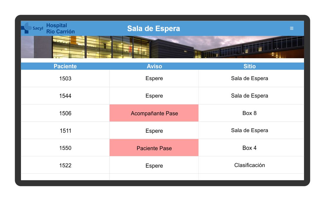 - Este sistema de control permite que los pacientes y familiares estén costantemente informados en la sala de espera.