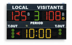 • Marcador electrónico led multideporte con tanteador, puntuación, tiempo de juego, período, sets ganados, tiempos muertos y faltas por equipo.